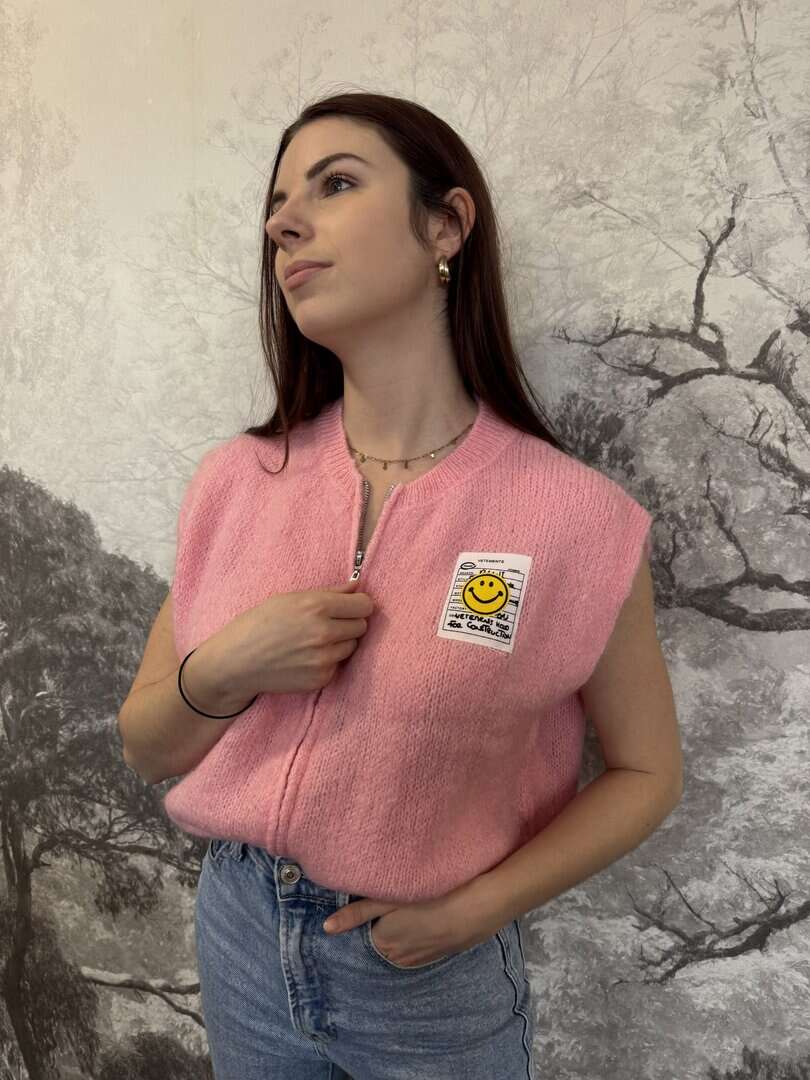 Le gilet Louisa rose est la pièce parfaite pour celles qui veulent ajouter une touche de douceur colorée et d’originalité à leur dressing.