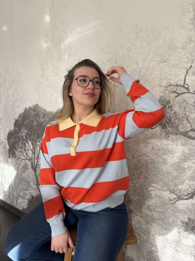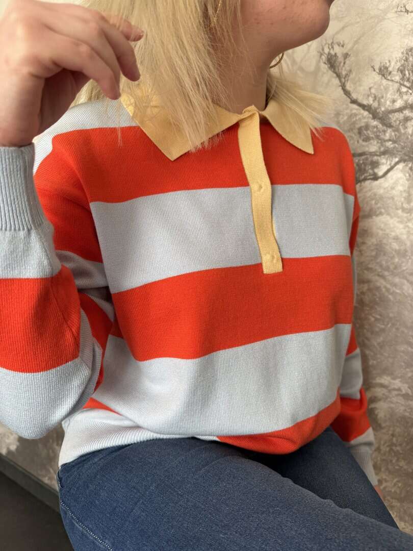 Pull Polo Rayé – Bleu & Orange